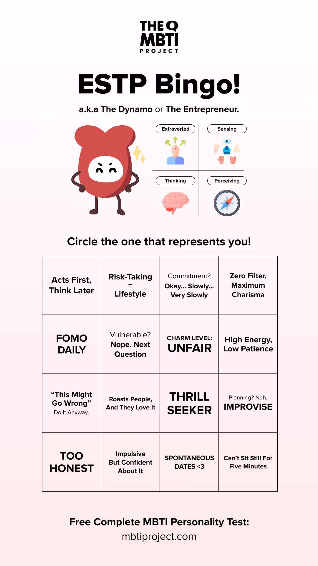 The ESTP personality type is characterized by bold action and responsive instincts that guide their daily decisions. As one of the 16 Myers-Briggs personality types, ESTPs trust their senses to assess immediate opportunities and risks. They move quickly and respond fast to what’s right in front of them, preferring direct action over speculation about what might happen later.